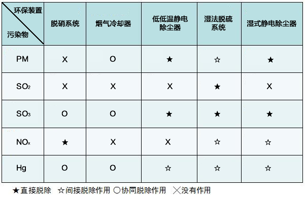 2)多個設備處理多種污染物,并為其它設備脫除污染物創(chuàng)造協(xié)同條件;